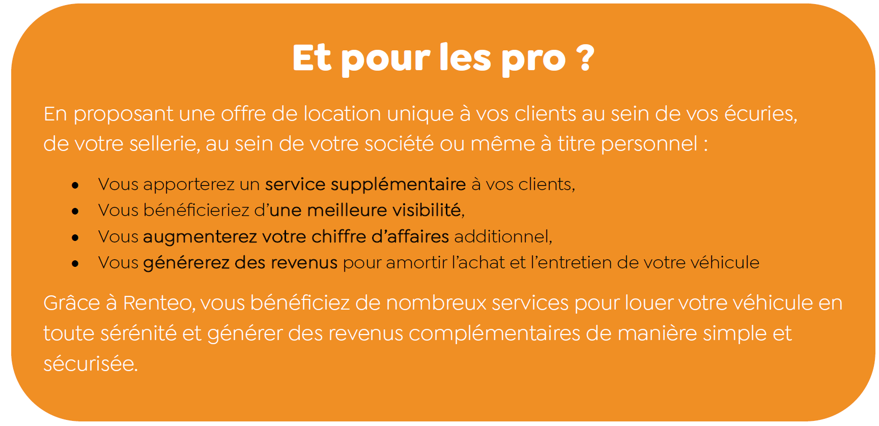 Pour attirer l'attention sur votre véhicule, Renteo met à votre disposition un kit de communication gratuit. Vous pourrez ainsi promouvoir votre véhicule dans votre région. De plus, nous utilisons la puissance des réseaux sociaux et de Google pour promouvoir activement les véhicules présents sur notre plateforme. Vous bénéficiez également d'une visibilité lors des événements et concours auxquels Renteo participe.