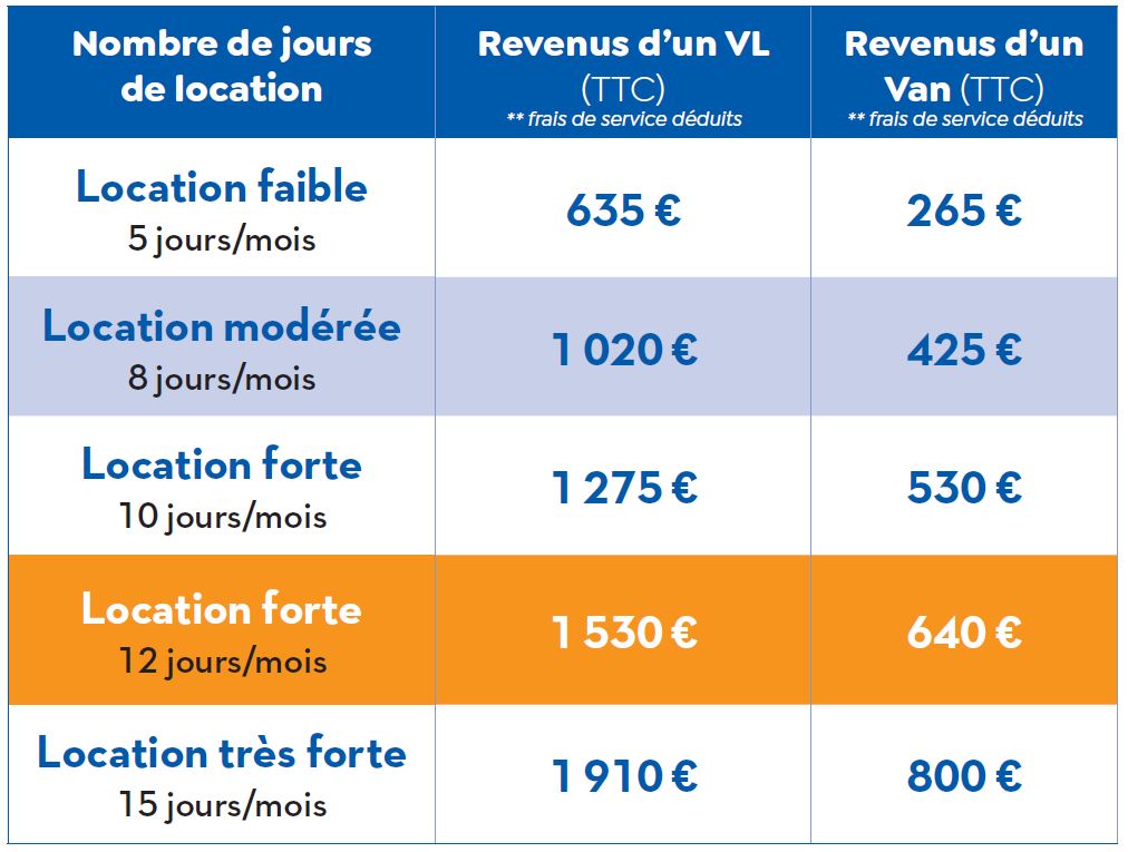 Exemples de gains lorsque vous louez votre véhicule via la plateforme